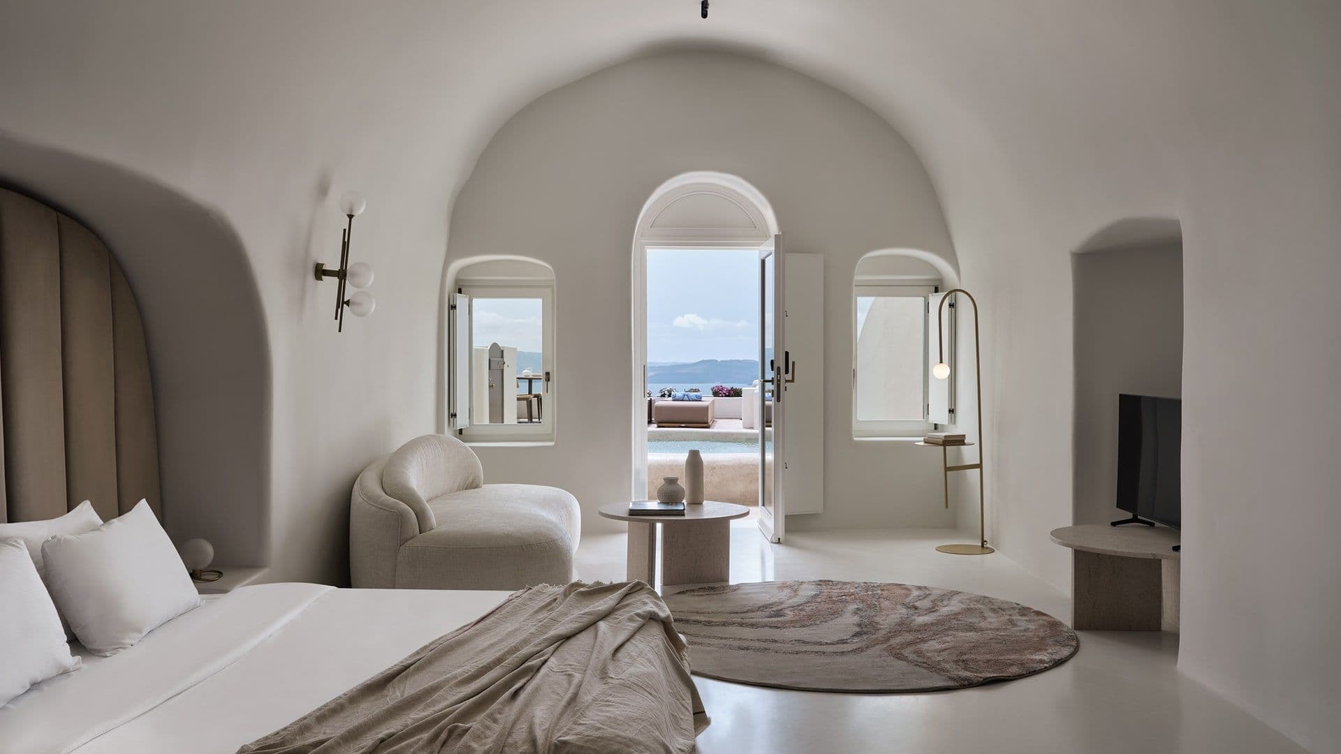 Experience luxury and serenity in our Executive Suite, where modern elegance meets the stunning beauty of Santorini’s caldera. This spacious suite features chic, minimalist décor, a king-size bed, and a sleek bathroom. Step out onto your private terrace to relax in your own plunge pool, overlooking the breathtaking Aegean Sea. Offering a perfect blend of comfort, privacy, and style, this suite ensures a truly memorable stay.