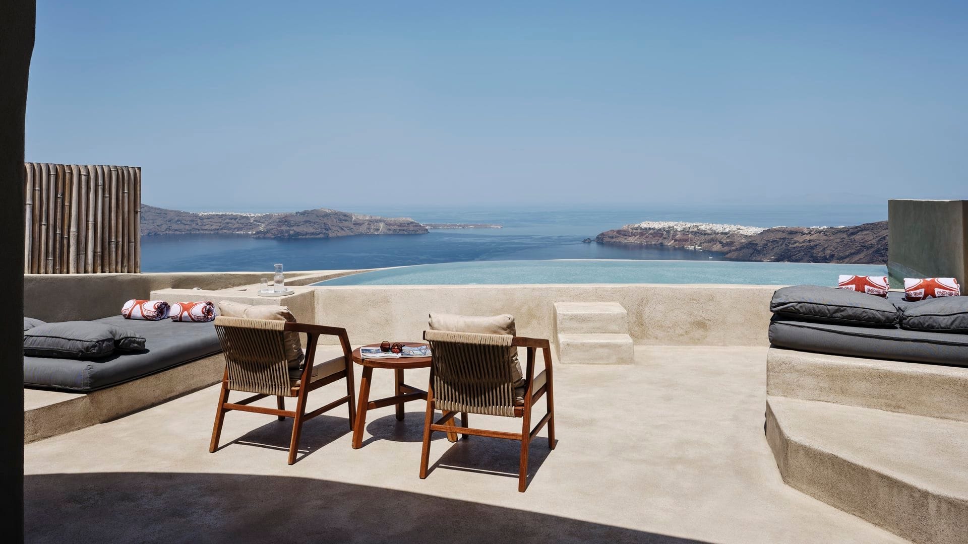 The modern living room provides a welcoming space for relaxation, while the private heated infinity pool invites you to unwind and soak in the stunning sunset and cliffside views. Accommodating up to four guests, this Executive Villa guarantees an unforgettable stay that exceeds all expectations, blending elegance and comfort in a breathtaking setting.